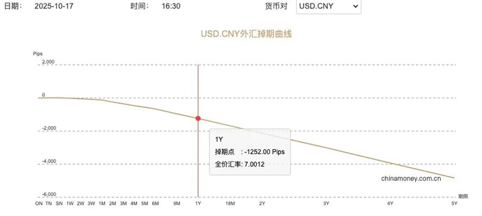 比如,衡量未来三个月人民币波动的美元兑人民币三个月隐含波动率指标显示,人民币未来三个月时间在6.9433至7.2195区间内交易的可能性为78%;再比如,10月17号,人民币外汇掉期曲线显示三个月后,人民币汇率为7.1165。