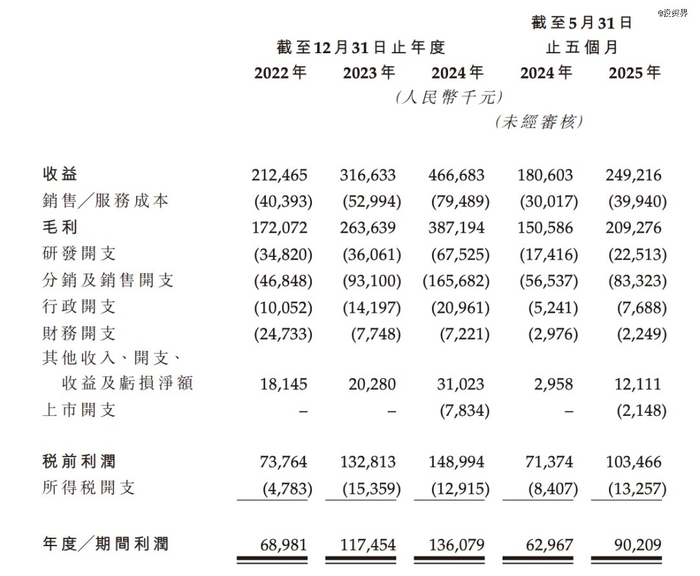 得益于多年深耕仿制药,海西新药与多数赴港的生物制药企业依赖创新药管线讲故事不同,早已实现盈利。具体来看,海西新药于2022年、2023年、2024年、2025年前5月营收分别为2.12亿、3.16亿元、4.67亿元、2.49亿元;期内利润为6898万元、1.17亿元、1.36亿元、9021万元。