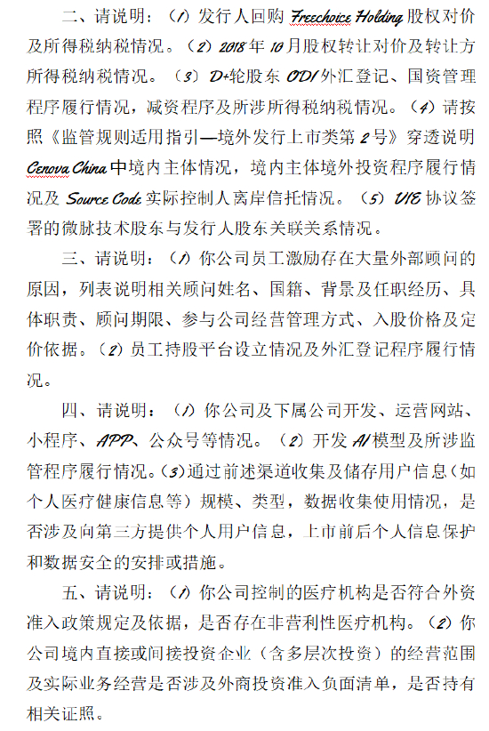 近日,微脉收到中国证监会关于本次境外上市的备案反馈意见,证监会要求公司补充说明以下事项,并由律师核查出具明确法律意见,具体反馈如下: