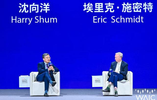 今年7月,施密特(右)在上海参加2025世界人工智能大会(WAIC)